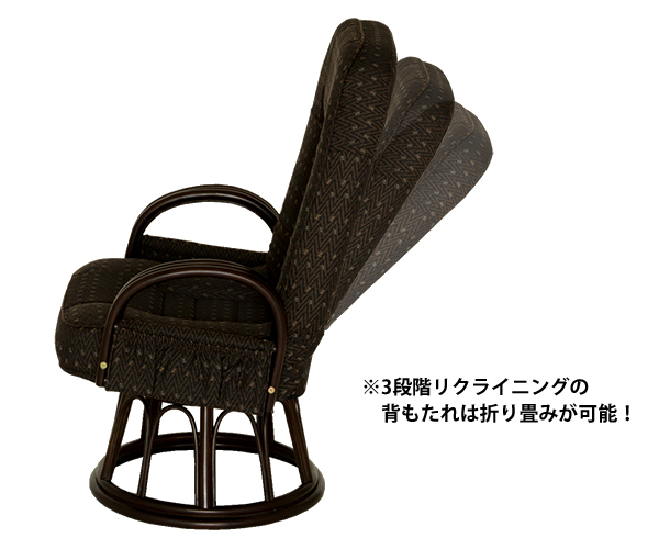 ●背もたれは3段階のギア式リクライニングで角度調節が可能です。