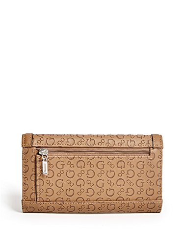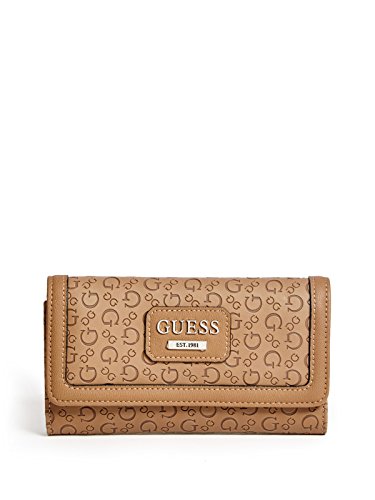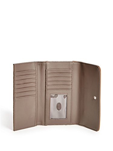 Feature : guess_factory_women_handbags_wallets_wristlets / guess factory women handbags wallets wristlets one / cognac matte embossed faux leather tri fold design / features 12 card slots bill pockets id window / exterior zipper pocket se646151 13310064