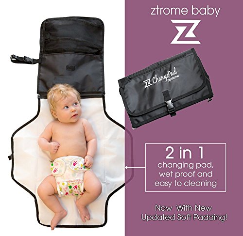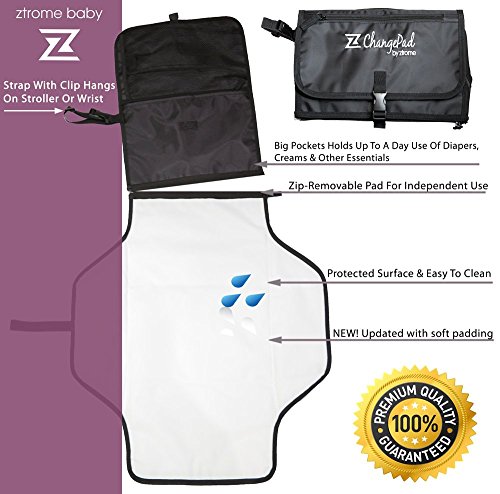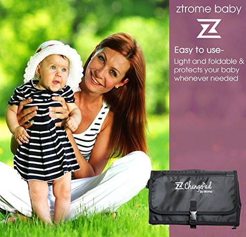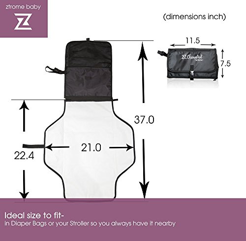 Total Unique Portable Diaper Changing Pad for easy on the go changing on your baby. This bag will fit a day full supply of diapers plus wiping tissues and more. Drop it in any bag, strap it to your wrist or clip it to your stroller so you have it with you all the time. This portable diaper changing mat station will save you on every your picnicking outdoors, your road-trip, or vacation with your baby. It will PROTECT your baby from dirty surfaces on restroom change tables when you travel. Polyester with TPE laminated for very easy cleaning. Size folded 11.5 x 7.5 x 0.8 inches Size unfolded 37 x 21 inches. PVC-Free, PEVA Material - Safer for your Baby. - Small compact, and stylish alternative to a larger diaper bag for QUICK changes on the go. EASY TO CLEAN - Fully padded vinyl surface with detachable pad for added versatility. This travel changing pad has -Adjustable wrist strap clips. Perfect for your Toddler. --EXCLUSIVE ONLY TODAY the ebook is included "Genius In Your Child" worth $19.95 you will find out how right learning can release your child's infinite potential