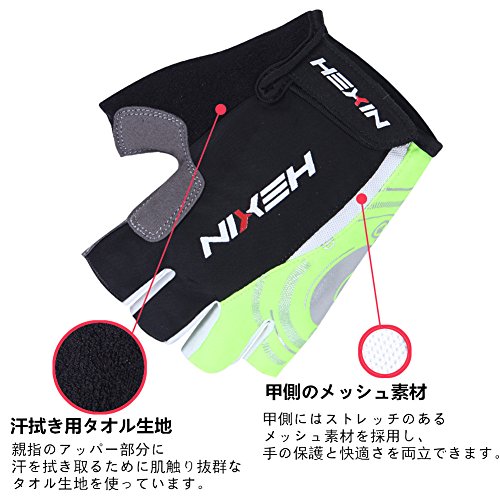 원본상품명: HEXIN サイクリンググロ?ブ ハ?フフィンガ? GEL入り 耐磨耗性 換?性 男女兼用 夏用 自?車用手袋 グリ?ン XL