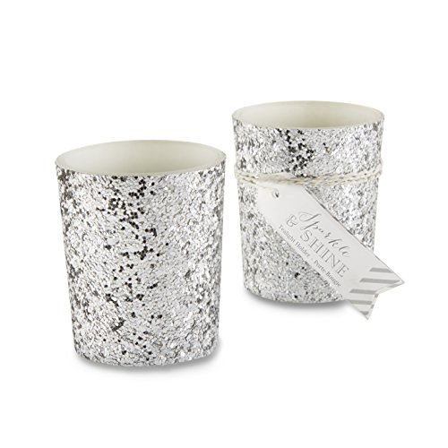 Kate Aspen Sparkle and Shine Glitter Votive, Silver, Set of 4