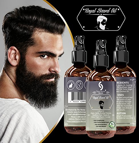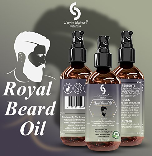 2 fl. Oz Royal Beard Oil - 100% Natural - Softens Your Beard and Stops Itching - With Nourishing Jojoba Oil, Organic Argan Oil, Evening Primerose.