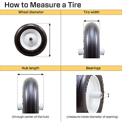 - Flat Free Tire made of solid, polyurethane foam. Non-marking. Turf Tread