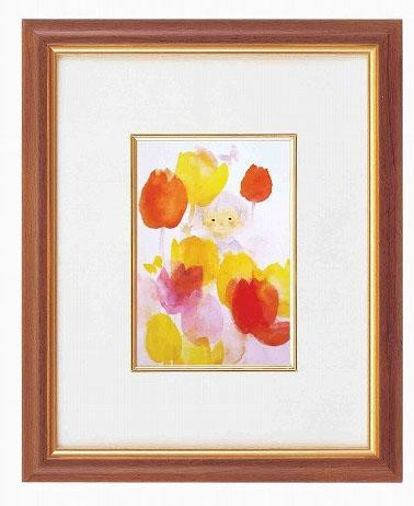 淡い色使いで、優しく描いた「いわさきちひろ」の可愛らしい絵がセットになった、木製の額です。