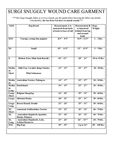 Studio : Surgi Snuggly, LLC Publisher : Surgi Snuggly, LLC Binding : Misc. Product Description The Surgi-Snuggly is a multi purpose garment constructed of soft, incredibly stretchy material allowing for comfort and fit. Your pets can go about their daily routines in the Surgi-Snuggly including eating, sleeping, going to potty and of course snuggling. The Surgi Snuggly is a one of a kind suit perfect for a variety of pet ailments including. Post surgical garment for after surgery comfort (No more cone of shame) Ease fear during thunder storms ( boat/car rides, kennel boarding ) Inhibits itching and scratching ( hotspots ) Aids in shedding hair containment. Use with pads for dogs in heat Incontinence Get your Surgi Snuggly today and you too will see why so many veterinarians and university vet schools use the Surgi Snuggly. Developed specifically for dogs, can be used on cats too Wear as a full or 1/2 suit. 0