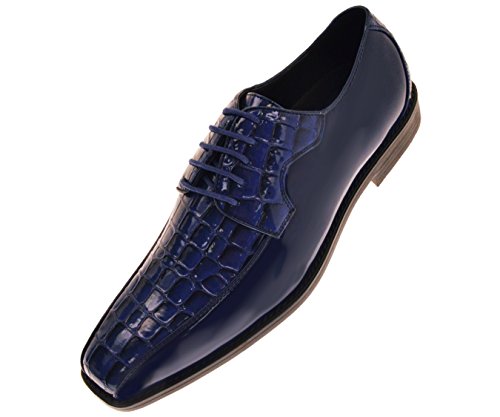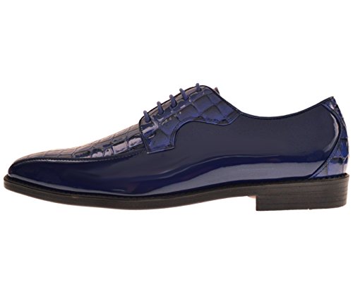 (Bolano)/Men's/Loafers Slip-Ons/DIRECT FROM USA/Bolano Mens Exotic Faux Crocodile Print and Patent Oxford Dress Shoe in Royal Blue: Style Hanner-052