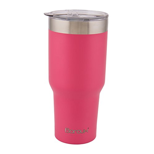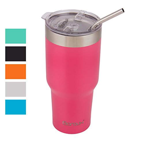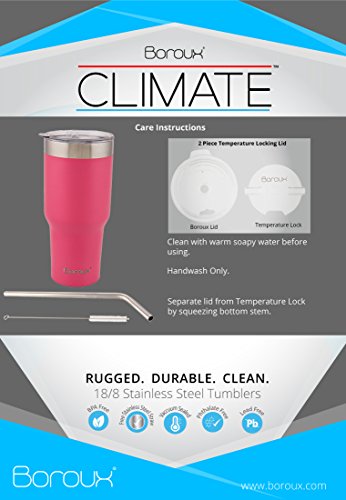 Boroux Climate Series 30oz Insulated Stainless Steel Tumbler Cup / Travel Coffee Mug with Extra Wide Stainless Steel Straw - Petal Pink