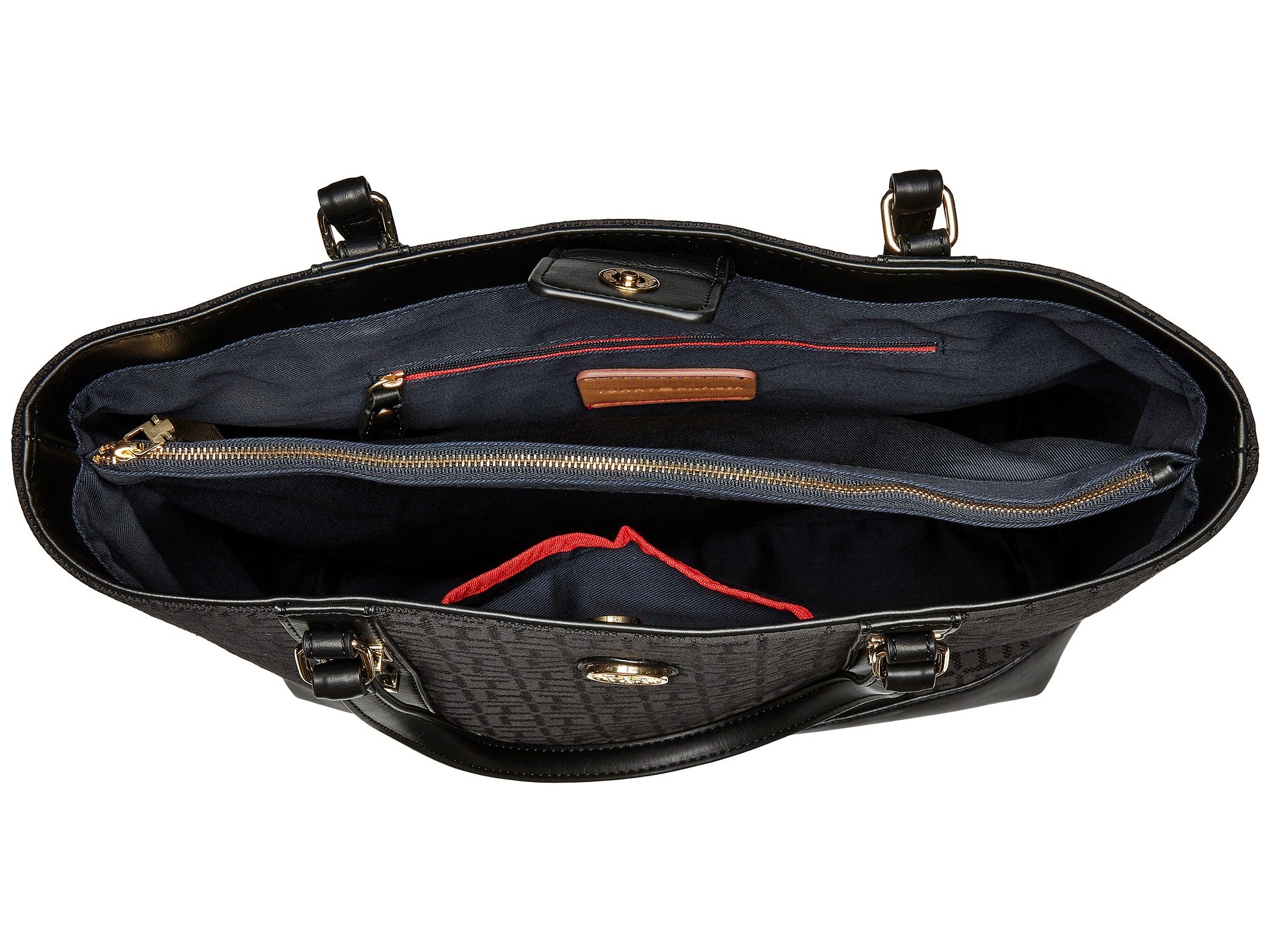 | Product Information SKU: #8996918Classic style for a classic you! Made of signature brand jacquard material with faux-leather trim. Magnetic-snap closure. Two flat carrying handles.Exterior features a brand medallion detail at the front. Flat base.Lined interior features two zip pockets and one slip pocket. Imported.This product may have a manufacturer's warranty. Please visit the manufacturer's website or contact us at warranty@support.zappos.com for full manufacturer warranty details.Measurements: Bottom Width: 13 in Depth: 5 1?2 in Height: 12 1?2 in Strap Length: 19 in Strap Drop: 9 in Weight: 1 lb 0.4 oz |