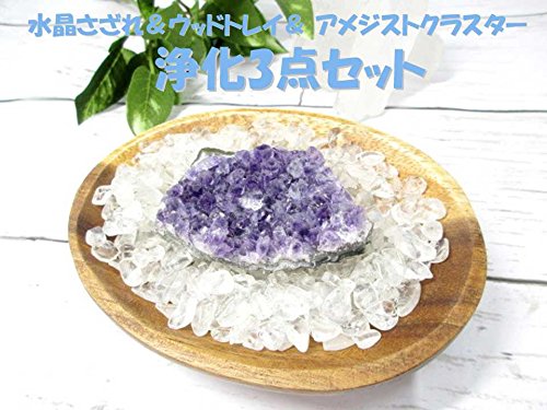원본상품명: RELIGHT(リライト)パワ?スト?ン 天然石 ?化セット ウルグアイ産 アメジスト ヒマラヤ産 水晶 さざれ クラスタ? 木製トレイ 3点セット