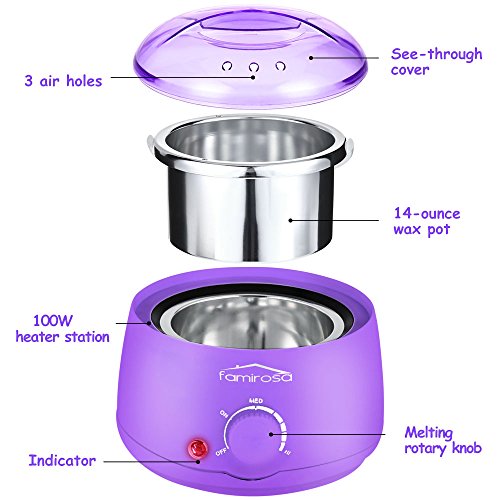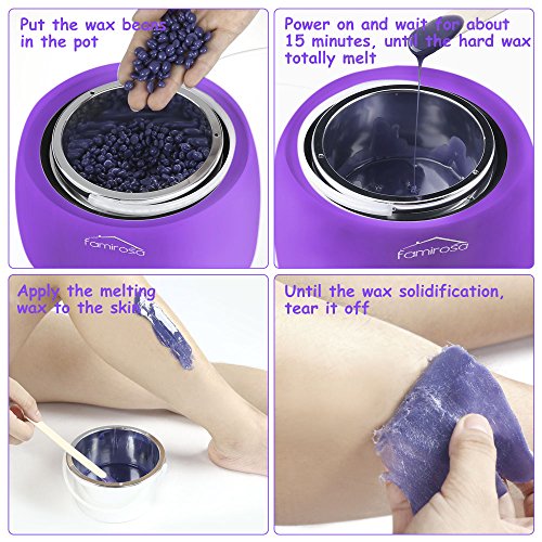 Wax Warmer Hair Removal Kit, Famirosa Waxing Heater with Hard Wax Beans, 10 Wax Applicator Sticks and 10 wax Strips for Women Men Body Face Eyebrow