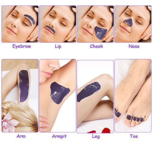 - WAX KIT INCLUDES: Wax warmer (500ml), 10 pieces wooden spatulas / applicators, 10 pieces wax Strips, 4 packs hard wax beans (Chamomile, Lavender,)