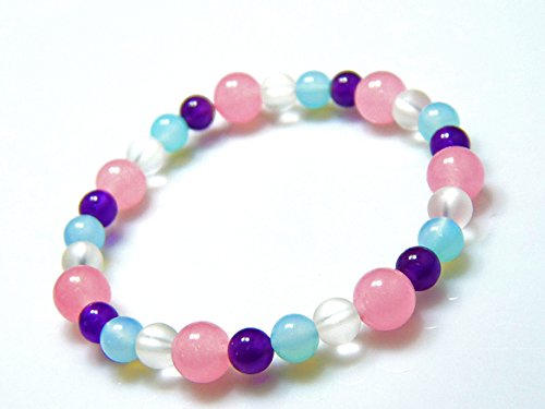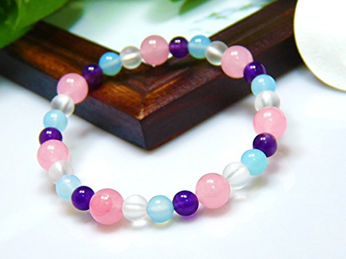 【경 주당】AAA핑크 비취×프로스트 수정×블루 카루세도니 6mm 파워 스톤 팔찌