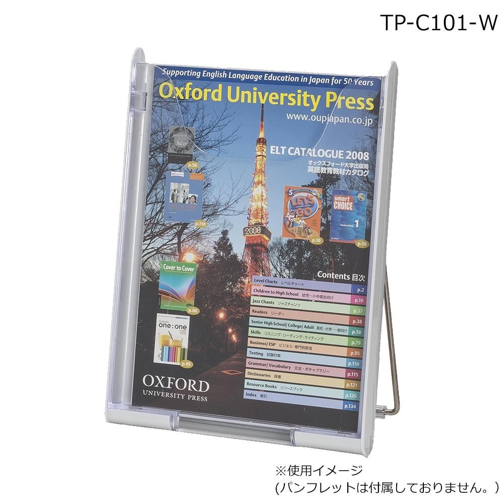A4判1列1段の卓上パンフレットスタンドです。販促ツールとしてお使いいただけます。 製造国:日本 素材・材質:フレーム:φ5mmスチールケース:PS樹脂 商品サイズ:(外寸法)W235×D160×H316mm、(ケース内)W222×D25mm 仕様:完成品 ※サプライヤー直送品 ご注文後5~6営業日後の出荷となります【商品名】ナカキン 卓上パンフレットスタンド ケースタイプ TP-C101-W