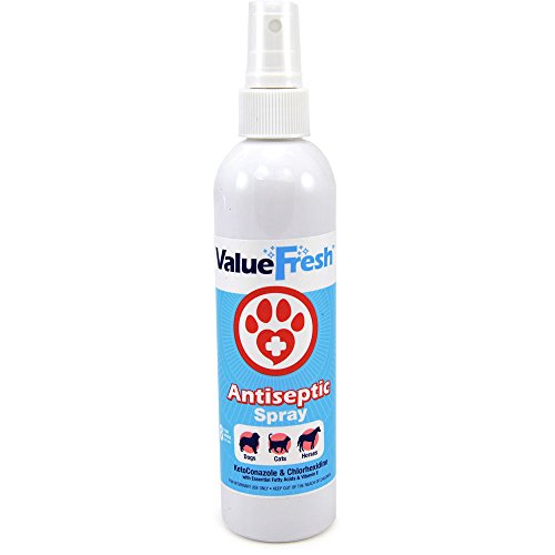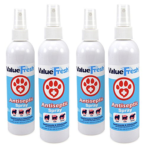 Studio : ValuePetSupplies Publisher : ValuePetSupplies Binding : Misc. Product Description Designed for dogs, cats and horses with dermatological conditions that are responsive to chlorhexidine and ketoconazole, ValueFresh Antiseptic Spray 32oz (4 x 8oz) contains essential fatty acids and vitamin E to nourish the skin and further control irritation. 0
