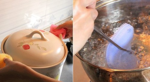 - Silicone brush can be used repeatedly,wash fruits and vegetables,clean pots and pans ,is safe and tasteless,non-greasy,clean without residue