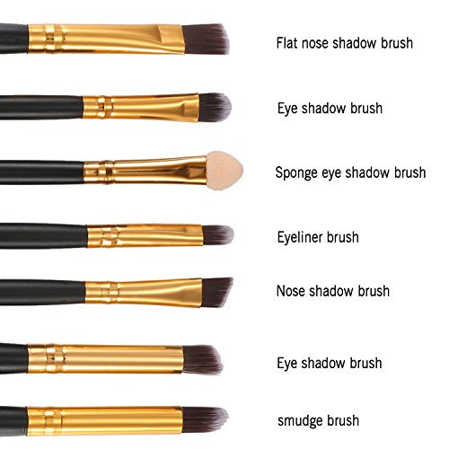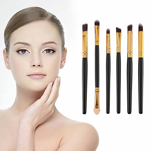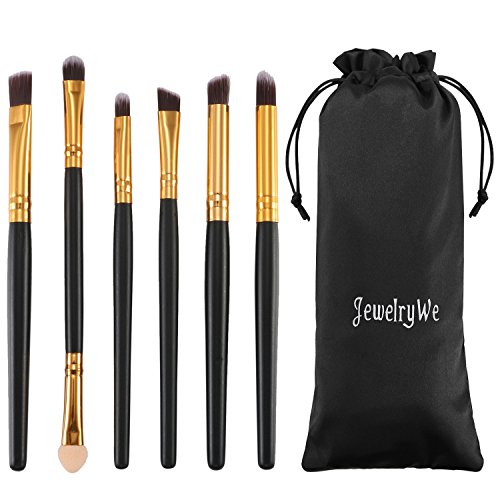 JewelryWe 6pcs Makeup Brushes Cosmetics Set Eyeshadow Eyeliner Nose Smudge Tool Kit - Pencil, Shader, Tapered, Definer