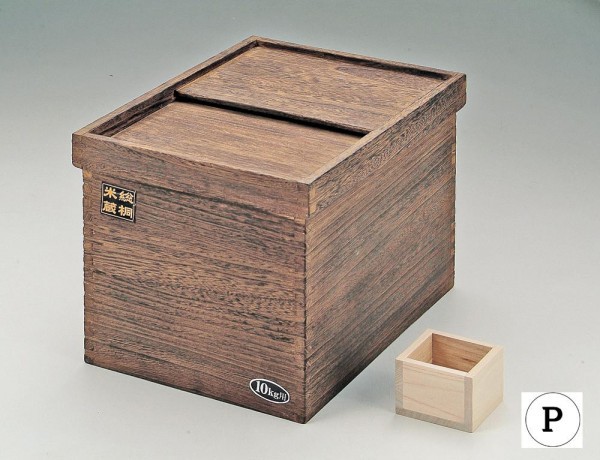 | 通気性の良い桐製米びつでお米をおいしく保存します。 |