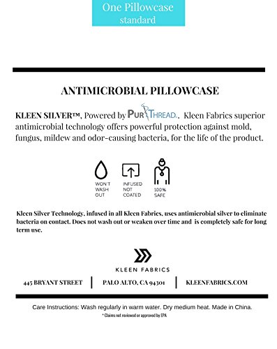 Studio : Kleen Fabrics Publisher : Kleen Fabrics Product Description Kleen Fabrics Acne Fighting pillowcase is infused with Kleen Silver Technology, powered by PurThread. Kleen Fabrics superior antimicrobial technology offers powerful protection against mold, fungus, mildew, and odor-causing bacteria, for the life of the pillow case. Lifetime guarantee against odor and bacteria. PurThread Technology is an award-winning technology that embeds pure, natural, recycled silver salts throughout our fibers, offering powerful, durable antimicrobial protection for fabrics. Silver has been used for years in the medical field due to its antibacterial efficacy. It works by interrupting the bacteria cell's ability to form the chemical bonds necessary for its survival. Using cutting edge technology to extrude the silver into the yarn fibers, and by embedding these silver salts into our fibers during the molten stage of production, Kleen Silver Technology, powered by PurThread, provides durable, antimicrobial protection that doesn't wear off, wash away, or weaken over time. Designed in the heart of Silicon Valley, Keen Fabrics is the global leader in smart fabrics. 0