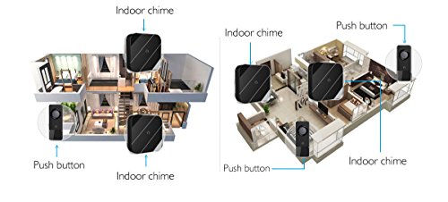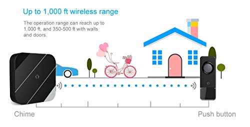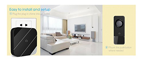 -. Feature : Easy Set Up: Broken doorbells are hard to replace. With Chimptron's energy-saving wireless doorbell, installation is simple. Our receiver and transmitter are pre-paired for installation. / 52 chimes (16 chord) to choose from and 4 steps volume control (25~110dB). / IP44 waterproof transmitter with soft silicon press button, it is able to withstand rain or shine. / With up to 1,000 ft operating range in open space, 350-500 ft audible range. / Easy to choose your change and select your favorite ringtone with forward and backward button.