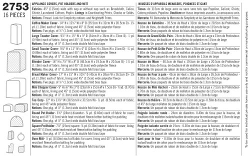 -. Feature : Home decorating in size os (one size), simplicity pattern 2753 / Number of looks included:3 / Designed and manufactured in the USA / Sested Fabrics: 45-Inch (115cm) wide with nap or without nap such as Broadcloth, Calico, Chintz, Laundered Cottons, Poplin; Linings in Coordinating P.R.Ints, Checks or Solids