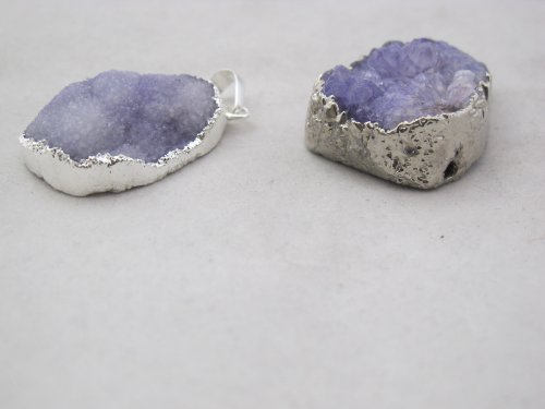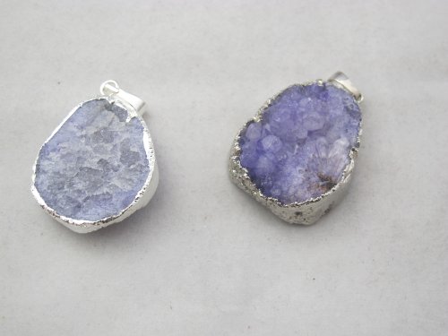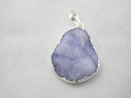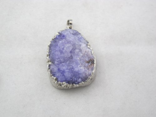 Agate Pendant Nature Druzy Agate Dyed Purple Color with Silver Bezel Necklace Charms One Hook