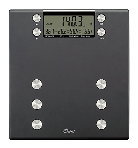 -. Feature : Weight Watchers by Conair WW54N Body Analysis Precision Scale / 4 User Memory / Measures body fat, body water and bone mass / Nonslip rubber finish / Lithium batteries included