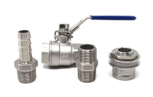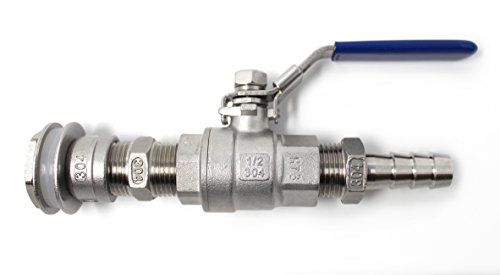 Concord 1/2" 304 Full Stainless Steel Ball Valve Spigot w/ Bulkhead Nipple and Barb