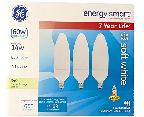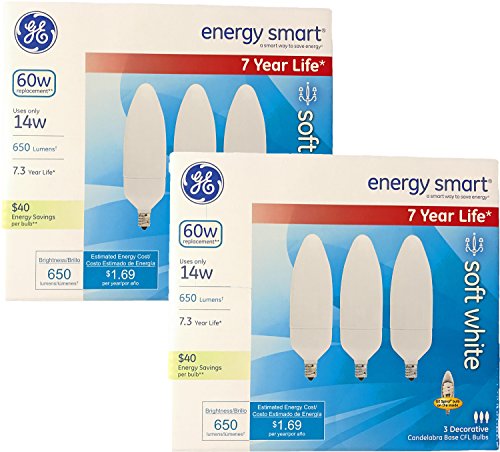 GE Energy-Smart Soft White CFL Candelabra Base, 14W Light Bulbs (60 Watt Equivalent) (14.0 Watt) (6 Bulbs)