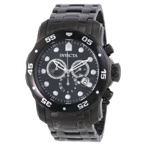 -. Title : Invicta Men's 0076 Pro Diver Collection Chronograph Black Ion-Plated Stainless Steel Watch