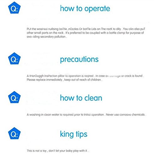 - Feature : Material: ABS and PP.Soft and safety. Can endure 80℃ temperature ,Phthalate-free and PVC-free. / Easy Setup - No assembly required for this drying rack. You can use it straight out of the box / Easily holds items items of all shapes and sizes upright for drying while excess water collects in bottom tray / Height adjust to fit multiple size bottles and cups,Pegs fold down flat for custom set-up and easy storage 。Size of drying rack: approx. 7.88*9.06*11.03 IN (20*23*28 CM), Holds up to 16 bottles and ideal for use on valves, straws, nipples, pump accessories, pacifiers and more. See more product details / PLEASE NOTE: This product is exclusively sold by Flii. We've not authorized it to any other seller.