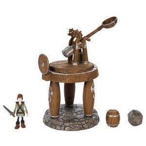 -. Feature : Easy take-down and rebuild / Launching catapult / Includes: 1 play set, 1 figure, 1 weapon, 1 barrel, 1 boulder / Hiccup with apron