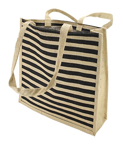 Kel-Toy NBS116-220 Stripe Burlap Tote Bag, 16" W x 15.5" H x 5" D, Natural/Black