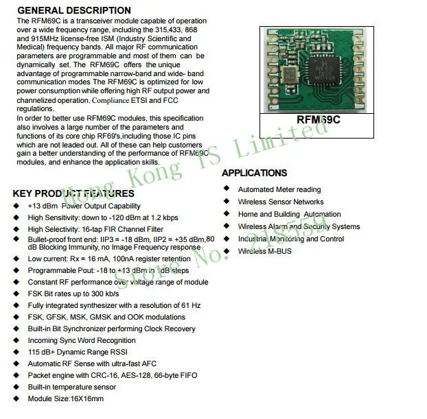 Model Number:RFM69CW