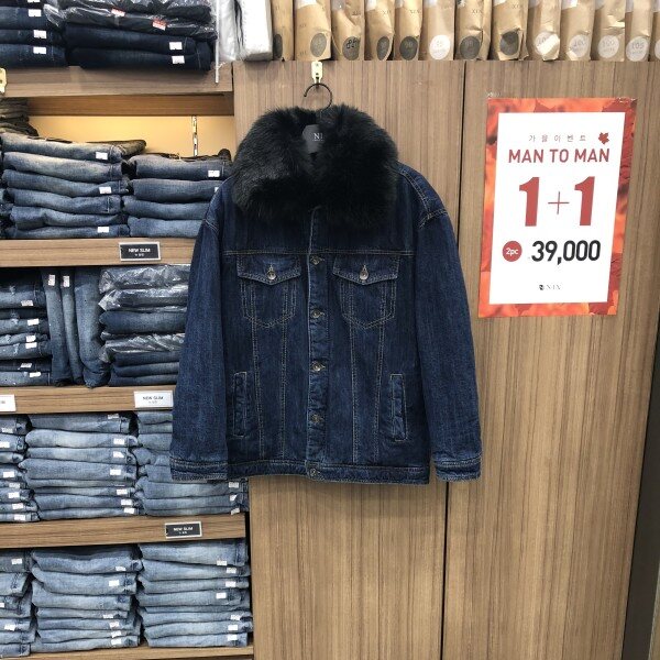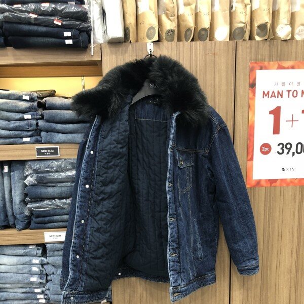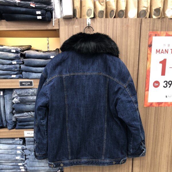 다크 인디고 톤 보다 약간 밝은 톤의 루즈핏 데님 트러커 몸판 안쪽 누빔처리되어 추운겨울에도 보온성과 착용감이 좋음 탈부착이 되는 고급스러운 페이크 퍼 장식 카라와 함께 디자인 됨.블랙퍼 컬러 특유의 카리스마와 세련된 캐주얼 룩킹을 연출할수 있음.