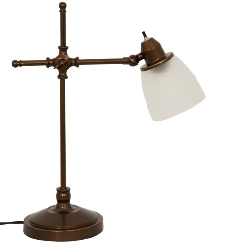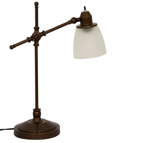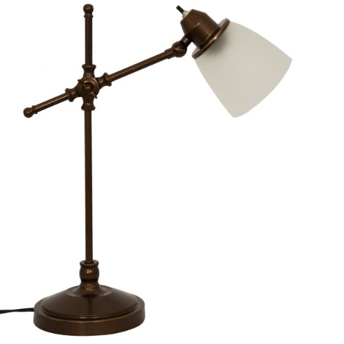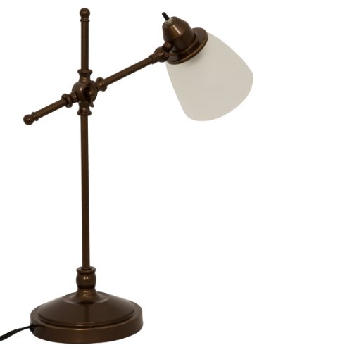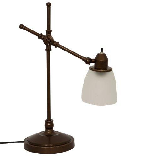 - Feature : Pivot Desk Lamp / Antique Bronze Finish / Smooth Locktight Adjustable Cantilever Arm / Frosted White Glass Shade / 18.50" Tall
