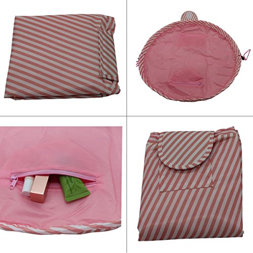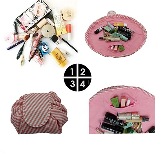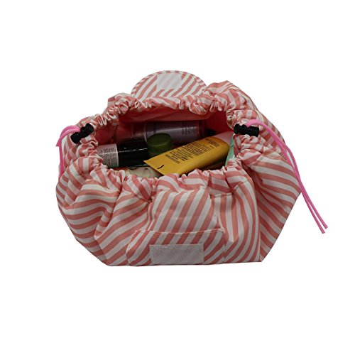 Stylish&Convenient designed Makeup Bag: the bag can flatten completely within seconds when you open the drawstring so that you can see all of your toiletries and cosmetics at once. Save time and find everything easily.