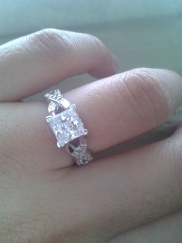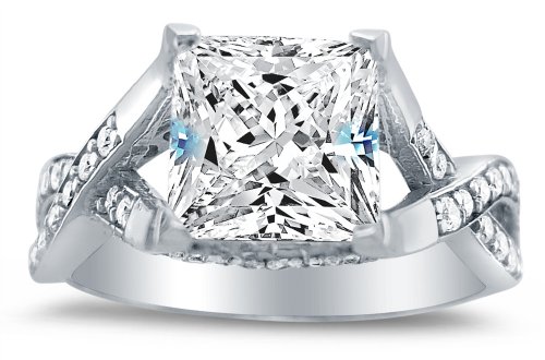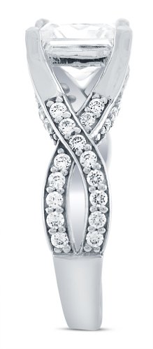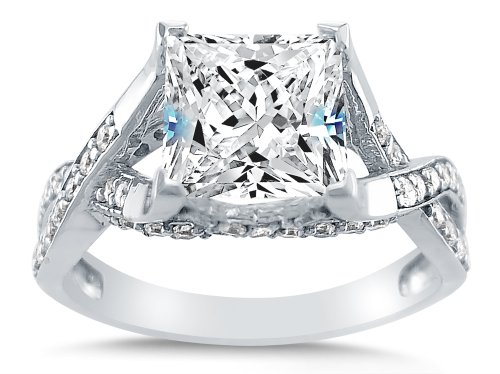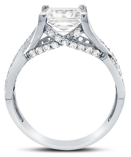- Title : Size 8 - Solid 14k White Gold Princess Cut Solitaire with Round Side Stones Highest Quality CZ Cubic Zirconia Engagement Ring 2.5ct.