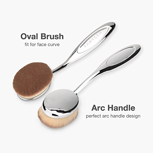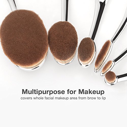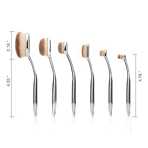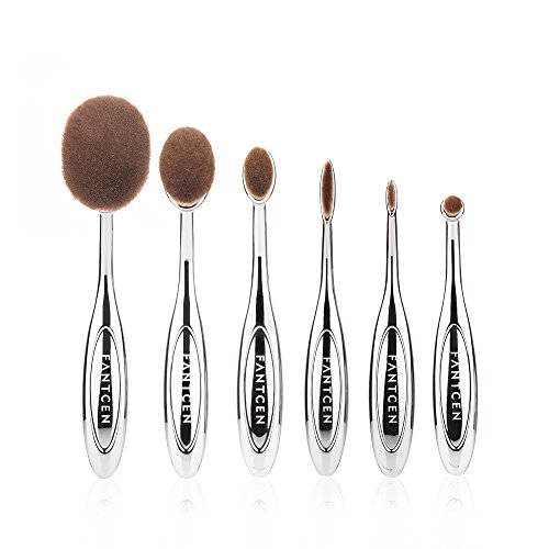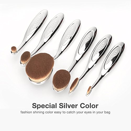 FANTCEN Foundation Oval Makeup Brush Set Powder Brush Set of 6 Silver
