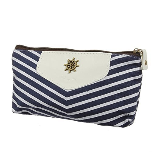 Sealike Classic Navy Style Striped Pen Bag Pencil Case Pen Holder Cosmetic Bag Pouch Bag for Women Teen Girls with Stylus Deep Blue