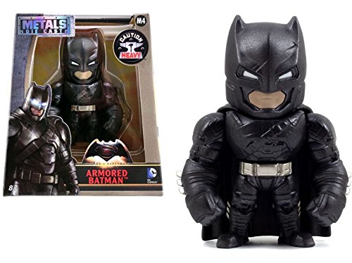 -. Binding : Toy -. Brand : Jada -. EAN : 0801310976708 -. Feature : Over 50% die-cast / Highly collectable, stylized pop-culture figures / Superior paint quality and craftsmanship -. Label : Jada Toys - US -. Manufacturer : Jada Toys - US -. Model : 97670 -. MPN : 97670 -. PackageQuantity : 1 -. PartNumber : 97670 -. ProductGroup : Toy -. ProductTypeName : TOYS_AND_GAMES -. Publisher : Jada Toys - US -. Studio : Jada Toys - US -. Title : Jada Toys Batman Armored Metals Movie Figure, 4" -. UPC : 801310976708 -. Warranty : 30 day warranty against manufacturer defects