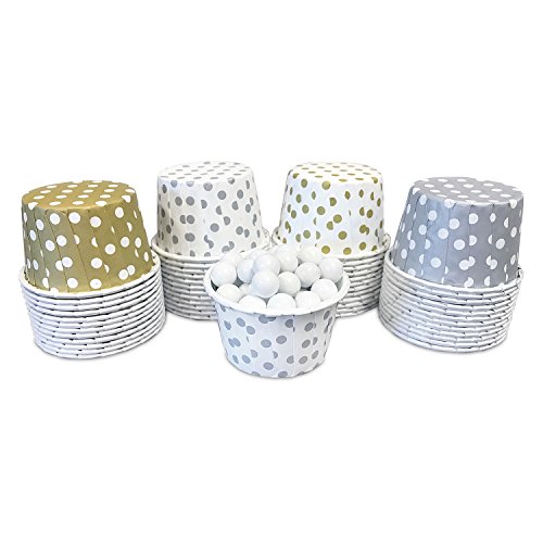 Candy Nut Mini Baking Paper Treat Cups - Gold Silver and White Dot - 2 x 1.5 Inches - 48 Pack