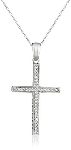 The elegant 10k White Gold Cross Diamond Pendant is an ideal choice for reflecting your faith with cultured fashion. A 10k white gold setting imparts the pendant with a sense of gleaming authority in a quality construction. Laced throughout the body of the cross, 36 natural, round-shaped, white diamonds in a pave setting unleash a glistening spectacle of dignified resonance. Included is an 18-inch rope chain with a spring-ring clasp for added security. Equally rich in contents and spiritual representation, the tasteful cross pendant is as at home with church services as it is with your everyday endeavors.Feature