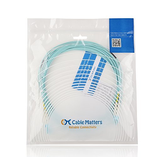 100 Gigabit Performance The Cable Matters Multimode OM4 Duplex 50/125 micron fiber patch cords are rated for the extreme demands of 10 Gigabit Ethernet, 8 Gigabit Fibre Channel, and 40 Gigabit InfiniBand networks. OM4 rated fiber patch cable extends the maximum reach distance from 300m to 550m and more than doubles the available bandwidth. Bend Insensitive Engineering with Backwards Compatibility Bend insensitive multimode fiber (BIMMF) provides greater flexibility in tight spaces or long cable runs with multiple bends. BIMMF fiber cable is engineered with an extra layer of glass around the core to ensure optical performance and provide durability for the extreme requirements of SAN network or high density patch panel installations. It offers interoperability and backwards compatibility with OM3 and OM4 50 micron fiber systems. Protect your network against macro-bend losses that are difficult to isolate, troubleshoot, and repair. Standards Compliance with a Lifetime Warranty The OFNP (plenum) rating conforms to strict NEC building safety codes but is compatible with unrated or OFNR (riser) rated applications. Every cable is individually precision factory tested for insertion and return loss to ensure transmission performance per TIA-568-C.3 specifications. The combination of LC connectors in a protective yoke, strain relief boots and zirconia ceramic ferrules provides a robust cable with low-loss performance. Cable Specifications - Connectors: LC to LC - Core: 50 Micron - Cladding: 125 Micron - Jacket: PVC OFNP (plenum) - OD: 2.0mm legs (2.0 x 4.0mm) - Design: Duplex zipcord - Classification: OM4 LOMMF - Wavelengths: 850 and 1300nm - Type: Bend-Insensitive Multimode (BIMMF) - Ferrule: Ceramic - Polish: PC - Compliance: TIA 568-C.3 /492AAAC, UL 910, C E, RoHS Warranty Limited Lifetime Warranty 0
