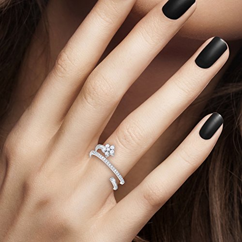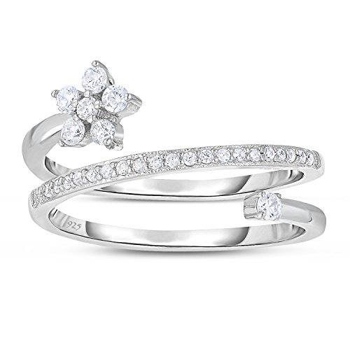 -. Title : Sterling Silver Delicate Spiral Wrap Flower Design with Cubic Zirconia