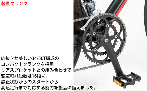 ●シマノ製16段変速と軽量フレームでレースから長距離ツーリングまでこなせるピュアロードレーサーです。