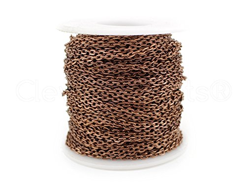 CleverDelights Rolo Chain Roll - 30 Feet - Antique Copper Color - 3x4mm Link - Bulk Oval Chain Spool