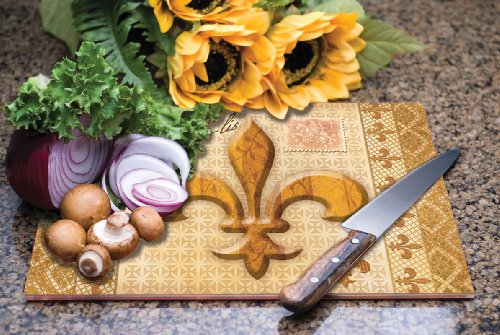 CounterArt Fleur De Lis Gold 8 by 12-Inch Glass Cutting Board