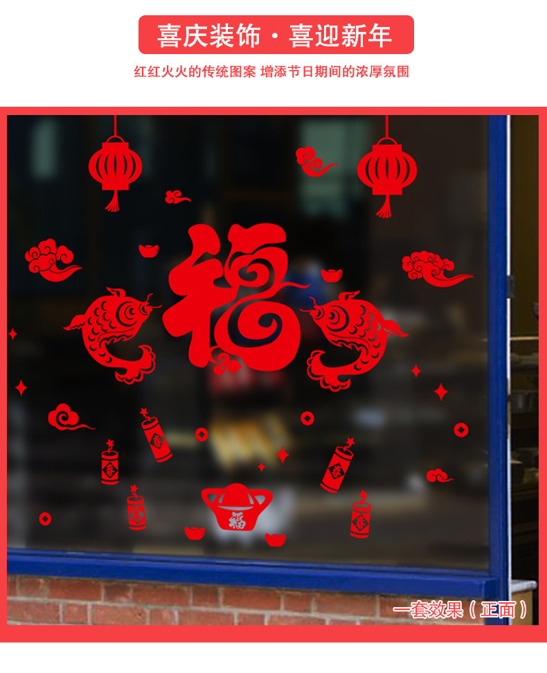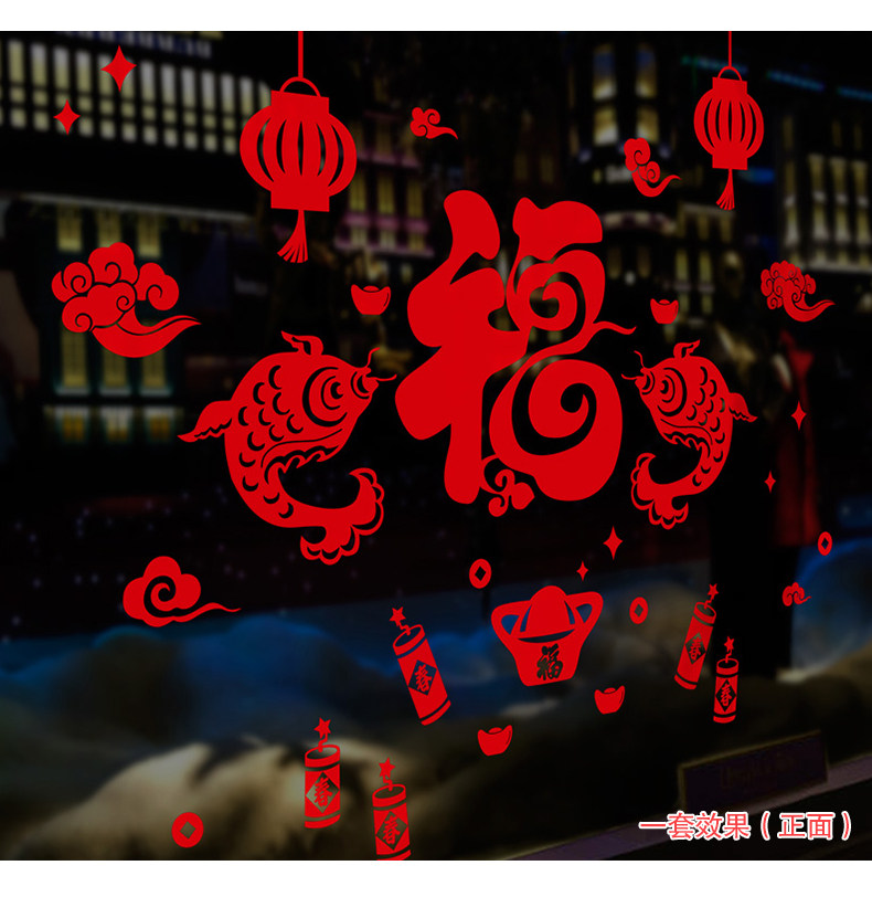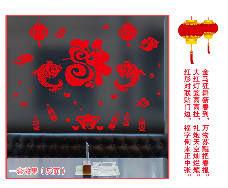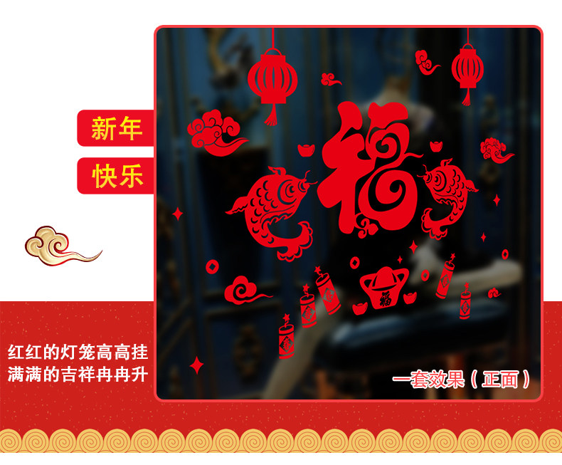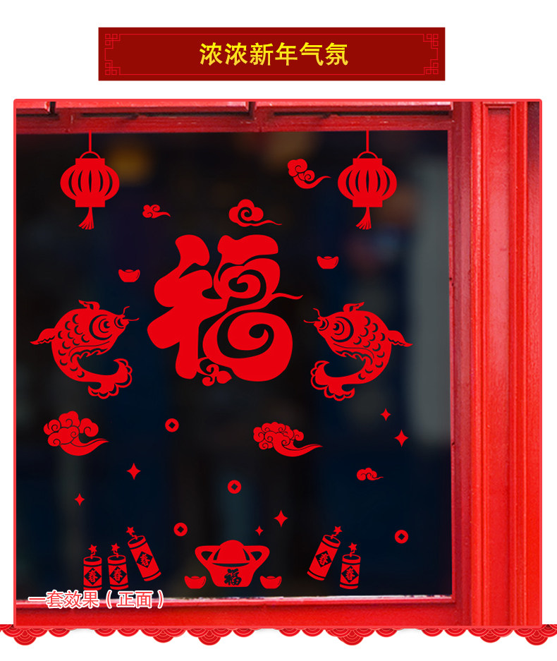 店铺商场装饰自粘墙贴纸贴画玻璃贴纸可移除福字祥云新年贴春之福