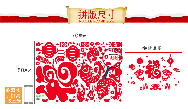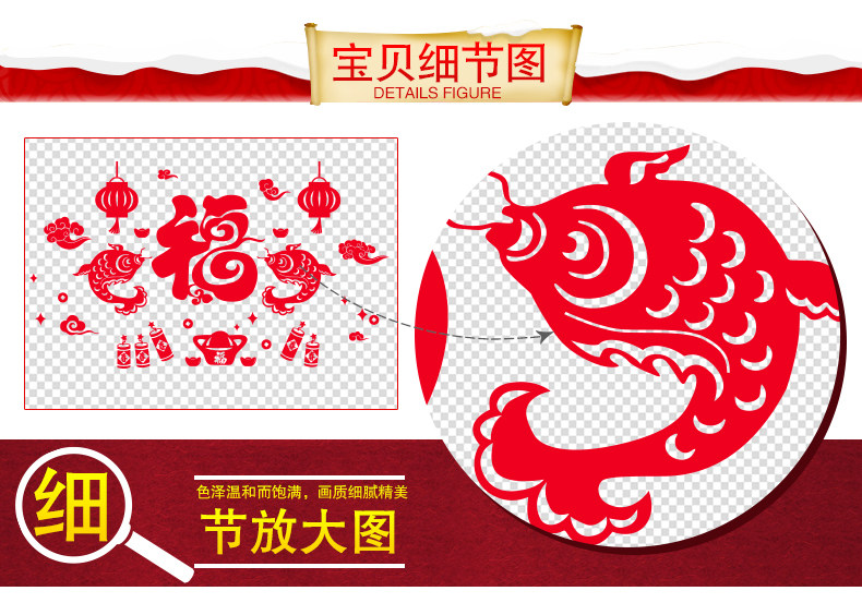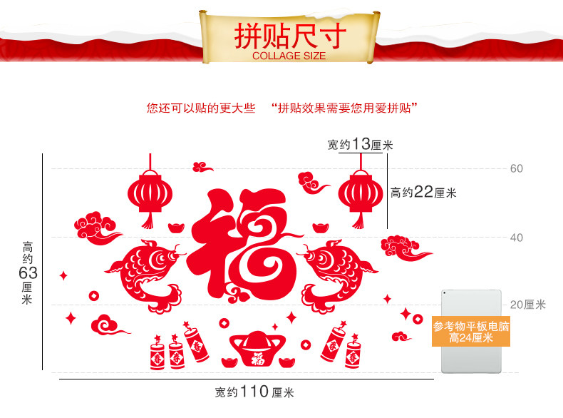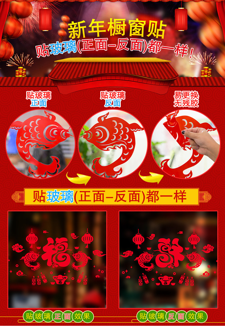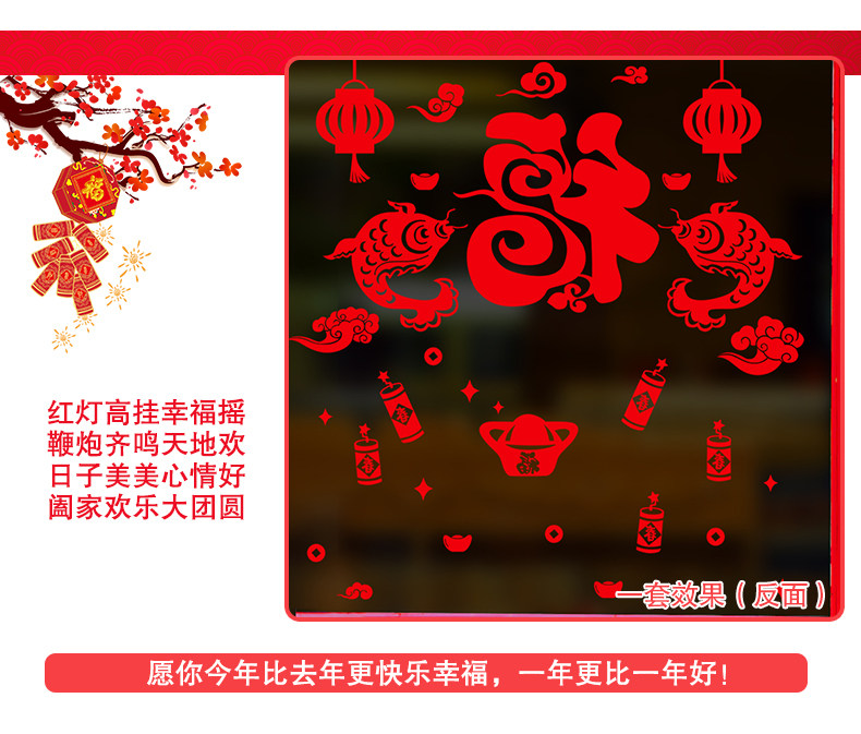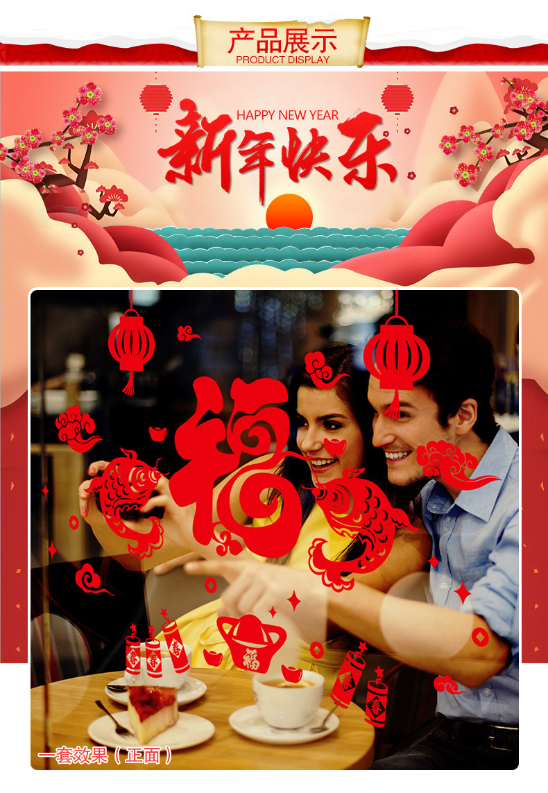 店铺商场装饰自粘墙贴纸贴画玻璃贴纸可移除福字祥云新年贴春之福