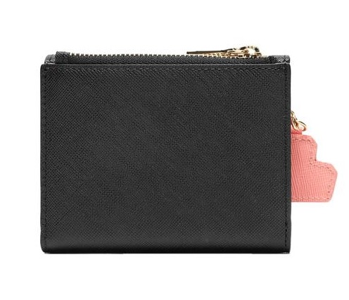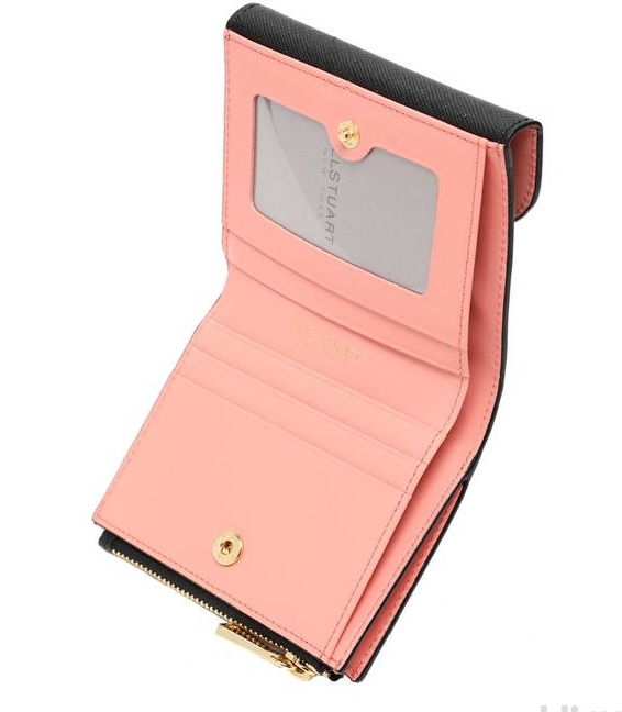 심플한 디자인에 탈착 가능한 미니하트 참장식과 내부 배색으로 포인트를 준 고급스럽고 여성스러운 2단 반지갑입니다.
